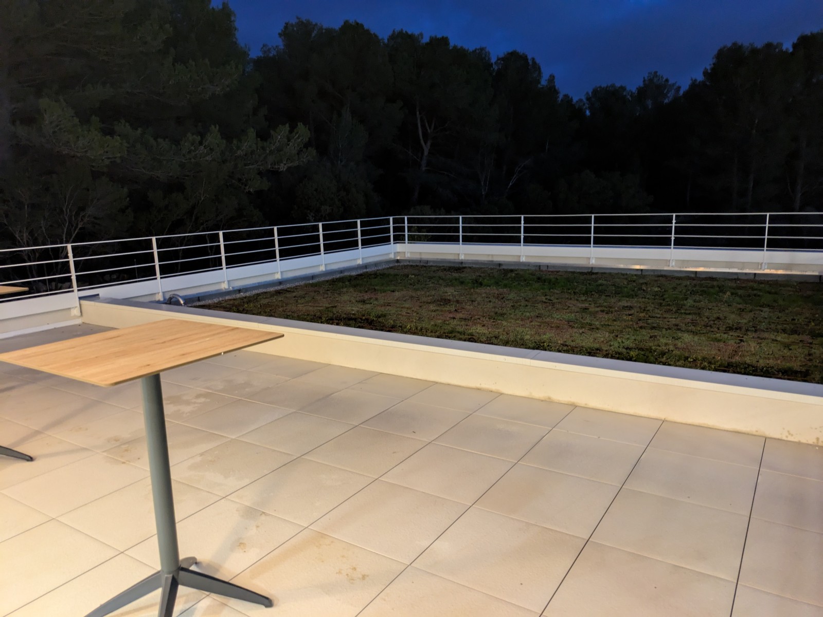 Étanchéité de 800 m² de terrasses accessibles à Saint-Rémy-de-Provence avec dalles sur plots grès cérame 600x600 et complexe isolé ou non isolé.
