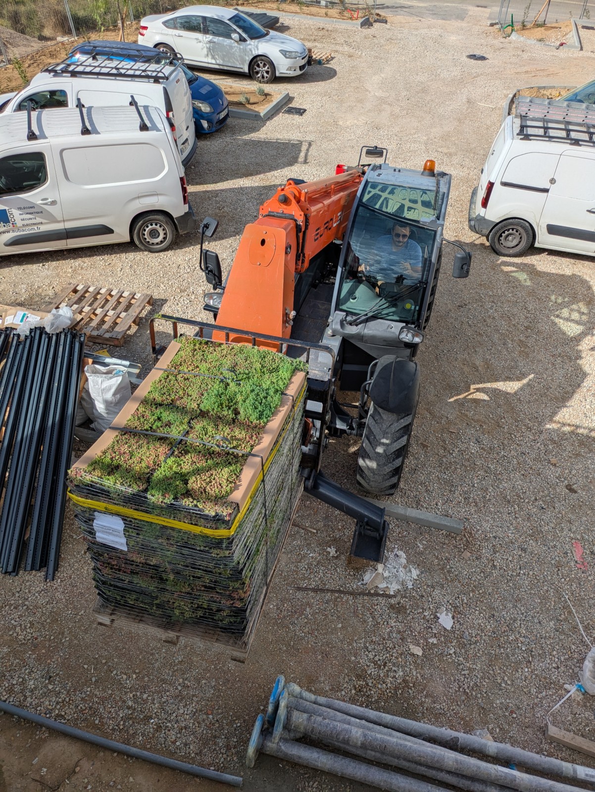 L’ensemble a été complété par les relevés béton, la mise en place de gravillons roulés, les joints de dilatation ainsi que tout le réseau d’évacuation EP comprenant naissances, trop-pleins et descentes.